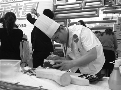 朝外街道2014年酒店餐饮业职工才艺风采大赛3日举办,来自辖区内悠唐假日酒店、中国会所等24家餐饮企业的职工参加了包括宴会摆台、客房服务、蔬果雕刻等6个项目的比试。今年大赛特意在项目上有所增加,酒店业、餐饮业的企业均可参加。本报记者 刘欣欣 摄影报道