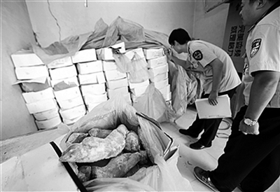 近日,记者发现北京朝来万通农贸综合批发市场肉类大厅内,有很多摊点销售这样光鲜白嫩的猪蹄,有商贩称,这类猪蹄是加工点通过“药水”浸泡而来。记者将样品送交第三方机构检测发现,多个摊位的样品残留双氧水和工业火碱。(9月9日《新京报》)