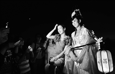 9日晚上,在卢沟桥上,“嫦娥”手提着花灯悄然飘来,引得前来赏月的市民纷纷驻足合影留念。当晚,四位“兔儿爷”、四位“嫦娥”与市民一起赏月,演绎卢沟晓月故事。众多市民在巨型祈福墙上,写下对家人和朋友的祝福。本报记者 陈艺 摄影报道