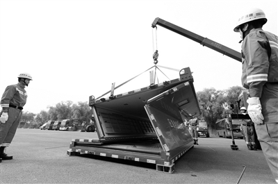 为全力做好APEC会议期间各项保障,昨天,北京消防总队战备保障基地进行APEC消防安保战勤保障实战演练暨消防车辆装备器材统型统配展示,共调集43辆各类消防车和160余名官兵参与演练。此次演练有效检验了本市公安消防总队战勤保障力量的组织指挥、力量调集和综合保障能力。本报记者 孙妍 摄影报道