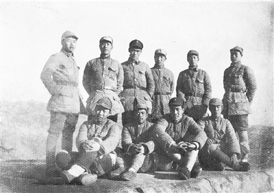 前排右二的战友叫欧克,这是化名。那时候不少革命者都用化名。欧克是分区民运科长,河北正定一带人。他在解放战争时期攻打山西临汾时牺牲了。当时是团政治处主任,牺牲的时候儿子有五岁左右了。欧克为人忠厚老实,人缘好。