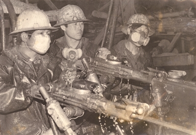 由于当时的设备十分的简陋,开挖隧道完全是靠人工打人海战术。斜井出渣是有轨运输,使用矿井用的铁矿车一车车用绞绳往外拖拉,打眼放炮拉渣、刨渣、倒渣、出渣、落地全是人工干。尤其是出石渣使用的工具,大都很原始。铁铲、洋镐、铁耙、铁网兜、气铁镐等,放炮过后,战士们用铁铲、铁网兜一筐筐往矿车端着抬着倒。当时在隧道里,气温低、通风条件差、空气污浊、地下水多,干一会就累得汗流浃背。