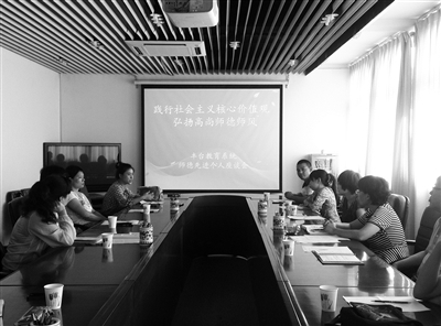 丰台区教育工会近日举办“践行社会主义核心价值观·弘扬高尚师德师风”主题座谈会,丰台教育系统师德先进工作者代表参会。在会上,部分代表就如何在工作中发挥师德作用和教育部对教师行为的“六条禁令”谈了看法。