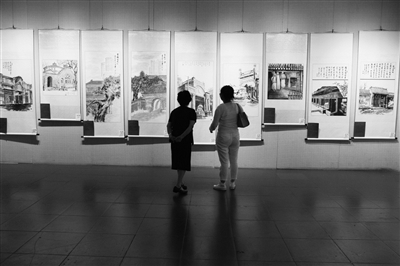 青砖灰瓦的平房群,高楼耸立的现代气息,历史久远的天文台一一展现在画卷之上。日前,建国门街道老年协会在信通大厦北京国艺美术馆举办“文脉丹青——建国门百幅历史画卷展”,为新中国成立65周年献礼。本次展览融绘画、书法、诗词、剪纸为一堂,共十个部分、百幅作品,由地区80多名老年书画、书法、剪纸爱好者历时半年亲手创作。作品以史料《建国门史话》为创作蓝本,以建国门地区历史文脉为主线,选取地区有代表性的老商街、老字号、建筑遗存、名人故居、老北京胡同、老北京民俗风情等,运用今昔对比、色彩反差等形式勾勒出了一幅幅生动的地貌风情变迁图。