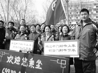 更换新车的那一天,车队的党团员青年们6点左右就来到了699路回龙观站台,我和团支部书记讲明工作要求及分工后,大伙儿立即开展了宣传工作。摆黑板、放宣传录音、举手持宣传牌,向广大乘客进行宣传,并回答乘客提出的问题。当乘客们看到崭新、干净的通道车时,都非常高兴,就围到了宣传台前。党团员们一边回答乘客的问题一边宣传,引导乘客有序排队、上车刷卡。3月的早晨天气寒冷,大家都穿着棉衣。他们中有的职工是自己当天休息、有的是上晚班。大家都是利用业余时间积极到车队参加活动,凛冽寒风挡不住他们昂扬的斗志,火红的青春在699路站台上闪光。