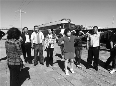 “不是这个样子,变了,变了……”走进当年被围困的富裕火车站月台,北京职工廖婧先是微微皱起眉头,眯起眼睛,极力地思索着,几秒钟后,她睁开双眼轻呼,“当年那座建筑用的黄砖,现在变成白色了,站台也大出好几倍!”有人问当年专列是否停在最边上的一站台,她很坚决地摇头:“不是这儿,是旁边的二站台。”一旁的富裕火车站站长奚春德笑了:“您的记性真好,没错,就是二站台。”