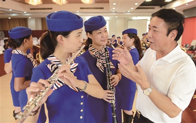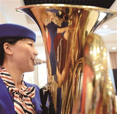 王哲,她被安排吹大号,三十斤重的大号背上肩,每次练下来都一身大汗:“每天吹,吹得牙都疼。”而五线谱则令所有人犯难。“我30多岁开始学五线谱,太难了。没别的办法,就是得学。”王哲说她当初看着那群小蝌蚪就头疼,现在给个五线谱就能吹出来。