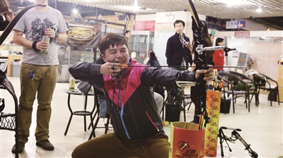 “一把大弓在手,用力一拉,手一松,只听‘嗖’的一声,箭就朝着靶子飞奔而去,那感觉一个字‘爽’”,职工兴奋地说。