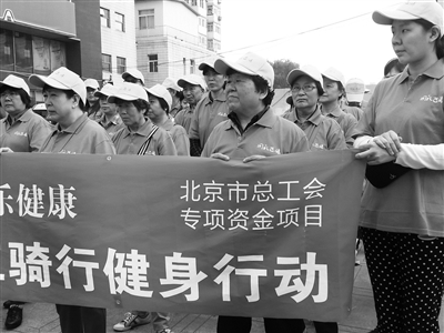 “骑车既健身又环保低碳,我们很爱骑行!我骑行,我健康!”中信公司家委会主任王彦在北京市街道企业职工骑行健身行动中这样对记者说。 9月28日上午,由北京市总工会主办、北京市自行车电动车行业协会承办、朝阳区呼家楼街道关东店社区协办,北京豫东朱氏投资发展有限公司联合飞鸽自行车倾情支持的“低碳环保,快乐健康——北京市街道企业职工骑行健身行动”,在朝阳区国安宾馆门前举办。来自关东店社区的工作人员和居民以及国安宾馆员工等70余人参加了活动。
