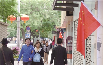 为庆祝新中国成立65周年,北京街头花团锦簇,长安街及街头小巷国旗招展,到处都充满了节日的喜庆。