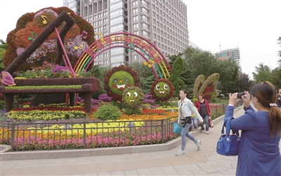 全市各主要大街用150多个品种的鲜花扮靓京都,总用花量超过2200万盆(株)。在天安门广场、长安街及街头人们纷纷拿出相机留下美好的瞬间。本报记者 周世杰 陈艺 于佳 万玉藻 孙妍 摄影报道
