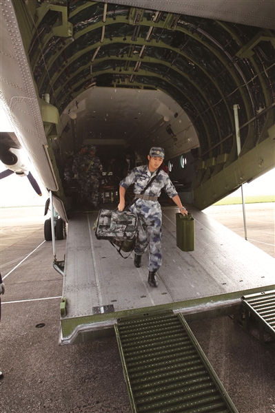 10月8日清晨,在云南思茅机场,成都空军官兵卸载设备准备赶赴景谷地震灾区展开救援。当日清晨7时35分,成都空军抗震救灾前进指挥部和现场指挥所人员乘航空兵某师运输机从四川邛崃机场起飞,直飞景谷震区上空勘察灾情,随后降落普洱思茅机场。成都空军官兵到达普洱后,立即开设“景谷抗震救灾军区空军前进指挥部”,现场指挥所人员随即赶往景谷展开抗震救灾工作。(新华)