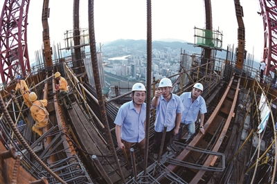 10月8日,由中国建筑一局(集团)有限公司承建的深圳第一高楼平安金融中心大厦工程项目主塔楼已施工至106层,结构高度已达491.8米,年底前将达到600米的高度。而这座“中国第一高楼”的建设者们正是一支拥有辉煌业绩与高超专业技术水平的北京建设者队伍。