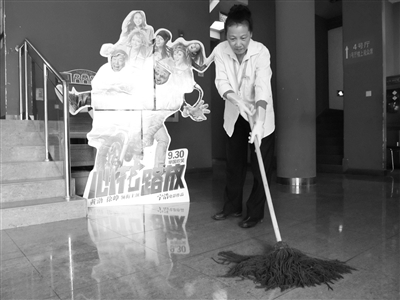 趁着观众还未到场的机会,曹贵华、陆秀琴、郭涛等人开始在影院厅内、外搞卫生。“十一”的北京已经入秋,特点是早、晚凉,中午热,上午十点穿件外套、夹衣合适,不然会感觉到冷。然而记者在东四工人文化宫入口大厅看到,当时曹贵华仅穿着一件衬衫在用力擦地,结果时间不长,曹贵华的额头就冒出了汗珠。对此,曹贵华、陆秀琴等员工笑着对记者说:“我们天天如此,就当是早锻炼了。”收拾完大厅,曹贵华走进一号放映厅搞卫生,首先检查安全门是否畅通,应急灯是否正常,而后开始清扫铺有地毯的地面。