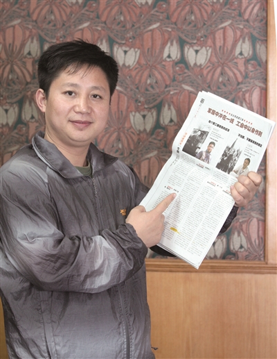 杨利君告诉记者:“尽管知道自己会上报纸,但最后有人告诉我上报纸,确实很激动!说起我看到报纸的心情真是一波三折。最开始我是在张光老师的微信上看到这份报纸的,但是没有看到有我出现,当时心情就有些低落。因为周五还没有收到《劳动者周末》,我就让爱人在他们单位找,后来爱人也说没看见关于我的报道。但是觉得又不可能,于是周一我又开始在单位找了一遍,后来才发现原来是服务员把周末的报纸收起来了,没有送办公室,最后终于找到,看到自己还占了半个版面,当我拿着报纸时的那种心情真的很难表达。后来爱人还把有我的那个版面拍下来发到微信里,收到了很多亲人的‘赞’,回家之后,爱人还给了我一个大大的拥抱……单位领导也很鼓励我,还有亲朋好友的支持,生活中瞬间像多了一盏灯一样明亮。”