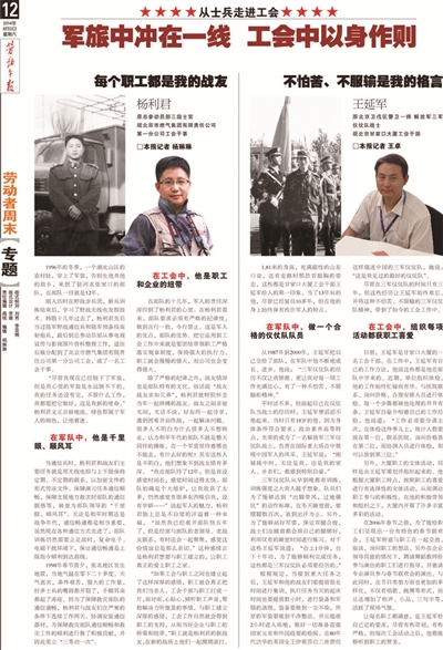 今年,北京市燃气集团有限责任公司第一分公司的工会干事杨利君过了一个不一样的八一节:上报纸了。杨利君对记者说:“八一,在这个属于军人的日子,我上报纸了,让我感到了我军人的自豪。”