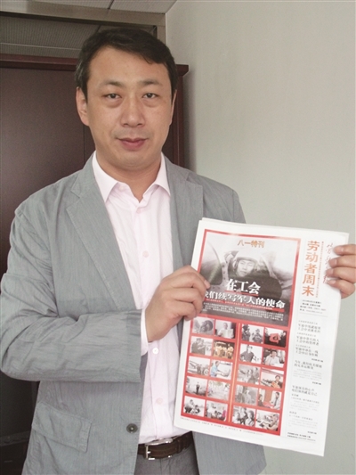 刘立东对记者说:“我也曾经是军人,转业后,先后在不同的岗位上续写着军人的使命。今年初,我担任了街道总工会主席,续写着军人的使命。我看了贵报在中国人民解放军建军87周年之际出版的‘八一特刊’‘在工会我们续写军人的使命’,感到非常亲切。我作为加入到工会的新兵,向工会里的‘老兵’们敬军礼。”