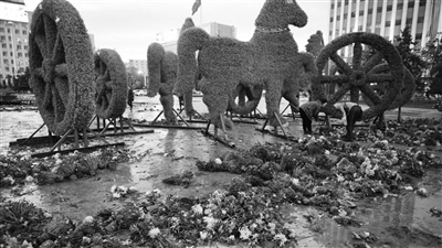 中新网10月11日报道,由于呼市天气比往年暖,原定于10日结束的菊花展,主办方推迟结束日期,曾在媒体发布“菊花展延续 望市民赏花勿搬花”的通知,然而从11日早间开始,陆续有市民开始搬花,开始广场管理人员进行制止,可是搬花人数越来越多,最终无奈放弃。