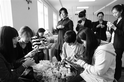 中午12点,在国网北京电力大兴供电公司的职工之家,聚集了一群女职工。她们围坐在休息室里,说说笑笑,手上却不闲着,一起忙着做着工艺品。
