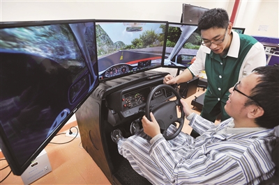 昨天,记者在首都医科大学附属北京康复医院康复中心看到,康复理疗师正在为一位工伤患者恢复肢体功能进行模拟驾驶训练。近日,首都医科大学附属北京康复医院,针对暂时丧失驾驶能力的工伤患者和残疾人,在原有职业康复训练科目的基础上,率先引入模拟驾驶训练系统,为患者创造更加真实的训练环境,以帮助其更好地恢复职业技能,提高生活质量。
