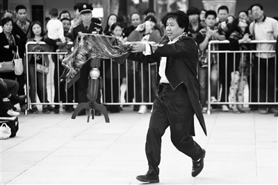 昨天,在八大处公园新游客中心广场,一位魔术师表演的“飘舞的桌子”引得台下游客掌声一片。当日,该园还举办了古琴音乐会、茶道表演、健美操等活动。今年,为期一个月的文化节以“西山显魅力,文化育和谐”为主题,群众性文艺表演20余台,旨在大力营造全民登高健身,传统文化共享的浓厚氛围。本报记者 陈艺 摄影报道