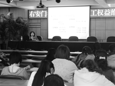 王宏伟:有关女职工权益的知识,其实是很丰富的。具体说,包括为什么要把女性职工的权益提出来?为什么要建女职工委员会?还有怎样做好女职工的权益维护?这些都是女职工,还有相关工作者应该熟悉和掌握的知识。而来到街道,来到企业女职工的身旁,通过讲座这种方式,教授女职工权益知识,可以说实用性更强。通过和女职工面对面的交流,可以让她们提高自我保护的意识,也熟悉相关的权益内容。