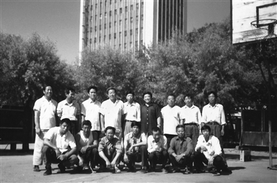 那个时候,我是这支施工队的党支部书记,见证了健翔桥以及全部配套工程的施工全过程。健翔桥的附属工程包括立交桥西侧与高速公路平行的小月河的明河改暗河的改造工程、立交桥东西两侧与高速公路相交的道路施工等。这张照片就是当时修建健翔桥的市政一公司一工区一队的队领导和班组长们在施工队队部篮球场的合影留念。
