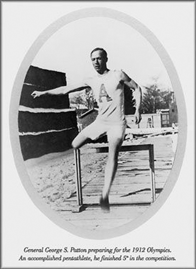 1912年斯德哥尔摩奥运会上,当时还是上尉的巴顿从旁人那里得知消息后,便决定自费去瑞典参加比赛,自视为现代武士的巴顿认为这是挑战体能和毅力的绝好机会。有43名勇士参加了这场引人注目的比赛,其中有包括巴顿在内的3名美军正规军军官。这场比赛中,前4名都被瑞典选手夺走,瑞典军人利勒赫克上尉获得冠军,27岁的巴顿夺得第5名。
