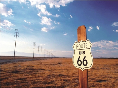 66号公路的前身只能供马车通行,可以算“66号土路”。人们拖家带口、满怀希望地赶着马车向处女地进发,走得人多了,沿途就有了路。此后,66号公路的命运随汽车而改变。
