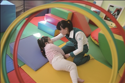 | 儿童康复科治疗师长邹丽丽在为脑瘫患儿进行翻身训练,她一直从事儿童康复治疗工作,擅长小儿脑性瘫患、运动发育落后、自闭症、多动症、颅脑外伤、先天马蹄内翻足、周围神经损伤等疾病的康复治疗,临床效果甚佳。 |