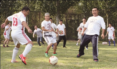昨天,卢沟桥乡机关工会足球队队员在大井足球训练场分组训练。当日,该乡机关工会足球俱乐部正式成立。据介绍,俱乐部的建立旨在构建健康向上、文明和谐的机关体育文化。本报记者 陈 艺 摄影报道