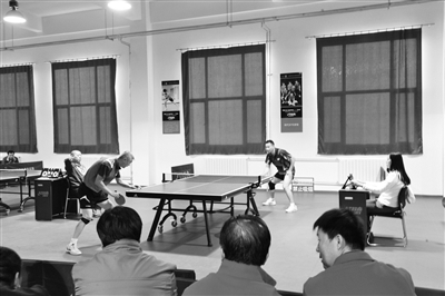 记者在比赛现场看到,在第一天的比赛中,8个乒乓球台同时进行三局两胜的比赛,而每一个球台旁,都有众多站脚助威的职工。只见在一个球台上,两名女选手正在进行比赛,而每当一名选手得分,旁边都会有不少人鼓掌叫好。记者问一位鼓掌的男同志是哪个单位的,男同志说他们是人力和社会资源保障局的,并指着旁边的一位男同志说,“那是我们局长。”而此时,记者看到这位局长正在为眼前扣球得分的本单位女选手鼓掌加油。