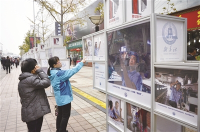 昨日,由北京市总工会联合新华社北京分社推出的“技能梦·职工梦·中国梦”主题展览在王府井步行街开展。此次展览将持续到11月5日,共展出技能冠军、创新工作室、技能大赛等40组图片。展览一经推出就受到了来往行人的关注,不少行人在展示灯箱前驻足观看、拍照留念。本报记者 周世杰 摄影报道