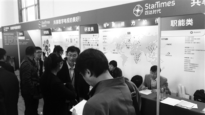 一家名为四达时代的公司在本次招聘会上就排出了五个展位来招募人才,招聘的职位也按类别分为职能类、技术类、研发类、传媒类等,招聘数量巨大。公司的招聘负责人介绍,由于公司近年来大力拓展海外业务,需要大量的人才,所以从10月份开始就陆续通过农展馆招聘会和校园招聘会在招募人才。记者在现场也发现,针对不少求职者观望的态度,不少企业的招聘人员采取了“主动出击”的方式,不只局限于在展位后等待求职者询问,而是主动在会场寻找合适的求职者,一旦有合适的,就主动上前介绍相关的岗位情况。