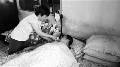 多年来,李银环一直为李兰英按摩双腿。“前几年,腿一直没有知觉,现在用力按时,有一些反应了,多亏她。”李兰英说。现在,由于李银环的悉心照顾,李兰英被人搀扶着已能行走,很有进步。