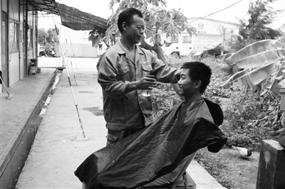 “哪还用跑20公里外的镇上啊,工地上的推土机师傅段师傅免费为大家剪头发好多年了,而且这手艺,你瞅瞅!”伍哥一边自信地摸摸自己的头一边接着说:“中午我带你去找他吧!”