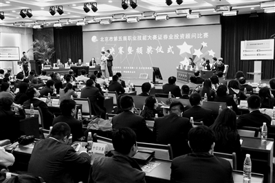 本报讯(记者 张江艳)昨天下午,来自北京证券业的十位优秀投资顾问聚集北京职工服务中心,展开激烈的技能角逐。由市金融工会与北京证券业协会联合举办的第五届职业技能大赛证券业投资顾问比赛总决赛正式开启。这也是在本市证券业首次进行的投资顾问技能比赛。