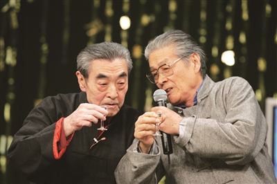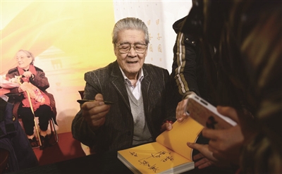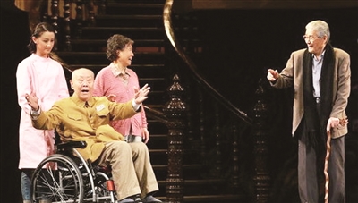 “如今我真的感觉,人到一定的时候是得服老,还是健康,心理健康就行了。比如,我在正式上演《家》的前一天晚上,彩排结束后走下舞台时,不慎摔了一跤,头部受了轻伤,左手手指脱臼。大家非常紧张,连忙请来了一位正骨的大夫。但我却要求导演第二天安排我一段戏,大家都踏实了,这样就可以安慰大家,给大家‘压惊’。后来我就想,这一跟头摔下去,这个年龄,大概也就是我了。”此事,一来说明蓝天野老师身板硬朗,八十多岁的老人,这么一摔还能这般“无恙”。二来,可以一窥蓝天野老师心态甚好,为人良善,自己身体受伤,还妥贴地照顾好他人的情绪。