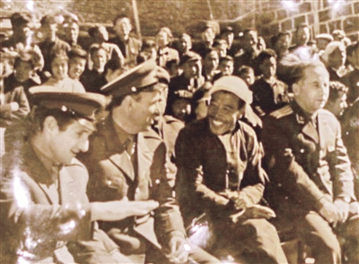 上世纪六十年代,毛主席号召“农业学大寨”。1965年,阿尔巴尼亚军队代表团也到大寨学习参观。这是大寨领导人陈永贵与他们亲切交谈。看这架势,没有翻译,老陈也能听懂他们的话。