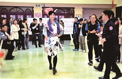 昨天,丰台单身职工联谊会举行,200多名青年男女参加了联谊。心心相印、心有灵犀、时装走秀、爱的同心圆等游戏互动吸引了现场的单身职工。尤其是时装走秀,更是将整场联谊会气氛推向了高潮。职工们围着10堆气球,分成了10个圈,每圈人群策群力,推出一名模特,自制服装,走向舞台。