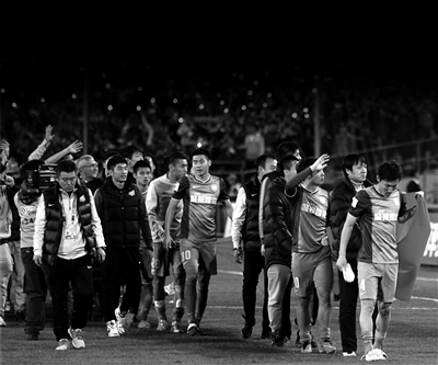 赛后,工体千余名河南球迷成了最幸福的人,河南队表现出色的门将韩锋将头埋在助理教练怀里痛哭,这是胜利的泪水。而在上海,大连阿尔滨不幸降级,足球城自此远离中超。