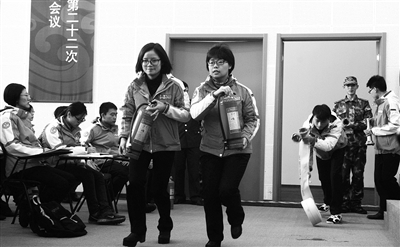 昨天上午,怀柔APEC雁栖湖新闻中心,消防人员对志愿者进行消防培训。雁栖湖新闻中心工作人员有400余人,包括来自外交部新闻司和北京市宣传系统的场馆运行团队,北京国际广告传媒集团、中国联通北京市分公司以及东道主转播商中央电视台的技术人员,中国大饭店的服务人员等,与109位高校志愿者共同组成服务团队,迎接来自全球各大媒体记者的到来。本报记者 陈艺 摄影报道