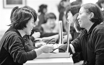 “下面为‘老人’量血压,考查血压仪的使用方法。”主持人一声令下,农家女迅速开始操作,手上动作不仅干净利落,而且要照顾到“老人”的承受能力,不轻不重,还要注意舒缓情绪。