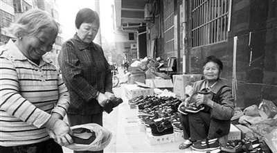 11月2日,尽管蒙蒙细雨带着寒意,但在新余市沙土街上“布鞋奶奶”廖金田的鞋摊上却充满温暖,纷至沓来特意来买鞋的市民为老人献上一份份爱心。看到廖金田老人鞋摊摆于沙土街通道口地上要时时忍受风吹日晒、雨雪淋冻之苦。新余市城管在市城北街道沙土卫生院屋檐下的人行道上,为廖金田设置“爱心摊位”。(11月3日 《江南都市报》)