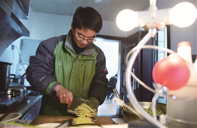 上山采访那天,佛爷顶正在重新修建观测站,3名建筑工人让这里成了有对话、有交流的地方。当天正赶上韩文兴值班,一个星期后徒弟卢海涛和他换班。聊到气象站的工作环境时,韩文兴表现出了无比的知足,“现在的条件比以前好多了!俺们延庆气象局每周都出车给我带上来蔬菜、粮食和饮用水。”