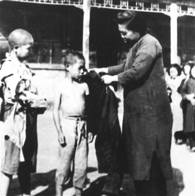 这两张老照片是1949年拍摄的,一张是北京街头民警在救助一名乞丐,另一张是在育幼所工作人员在给流落街头的儿童乞丐穿上新衣服。体现了政府对乞丐无微不至的关心。