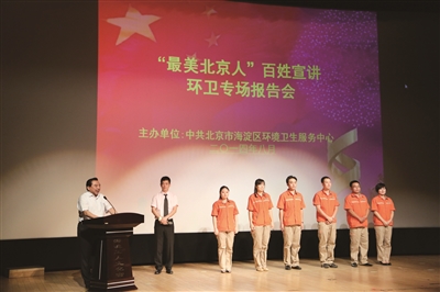 环卫工人不仅是城市的美容师,还是精神文明的示范者,正能量的传播人,他们的故事很多。今年,在海淀区“最美北京人”百姓宣讲环卫专场活动中,来自区环卫中心基层的7位宣讲员用真实的事迹、质朴的语言、动情的表达,讲述了环卫职工爱岗敬业、锐意创新、崇德向善、执着乐观的感人故事。无论是坚守岗位的劳模班长,情系环卫的公厕保洁员,还是拥有大学梦的青年编外职工,传递温暖的爱心服务站,都生动地展现了海淀环卫人和谐共进、执着前行的时代新风貌。