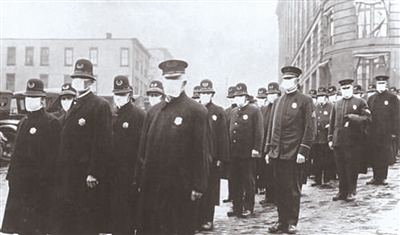 今年,在非洲,埃博拉夺走了几千人的生命。而在1918年3月到1919年底,全世界大约20%的人感染了“西班牙流感”。全世界死亡人数约为1亿。这是1918年世界恐怖大流感时,美国西雅图的警察们戴上保护性的薄纱口罩,以保持健康。