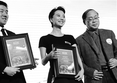 昨天,在北京举行的“拯救大象罗拉,对象牙制品说不”全球减少象牙消费项目启动仪式上,演艺界明星王珞丹、李宇春等被国际爱护动物基金会授予“爱护动物行动特使称号”。著名歌词、歌曲作家小柯、文玩家翟建民等知名人士在活动现场向市民倡导爱护动物,拒绝象牙制品。本报记者 陈艺 摄影报道