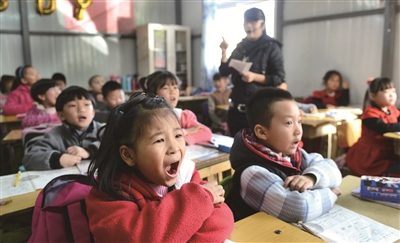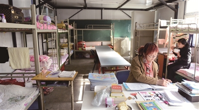 刚刚走出教室的教师邱龙燕告诉记者:“学校的房间很紧张,老师们没有专门的办公室,所以只能授课老师在前面上课,我在后面批改作业。”